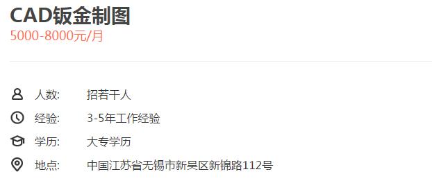 無錫億源萊機(jī)械制造有限公司 誠招:CAD鈑金制圖